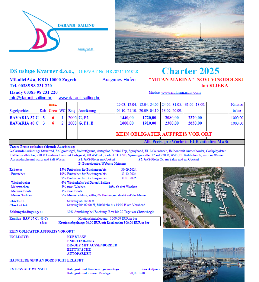 hrende 00385 (0) 98 231 220 info@daranjasailing.hr
