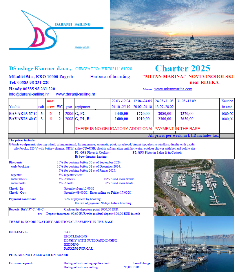 hrende 00385 (0) 98 231 220 info@daranjasailing.hr
